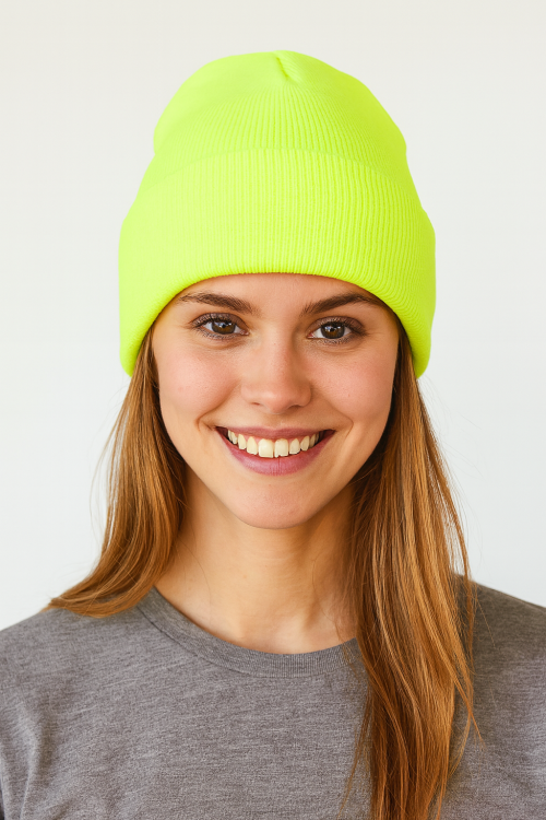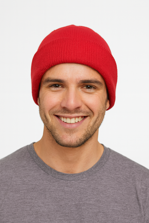 Klasický typ zimní čepice „beanie“, 2 způsoby nošení