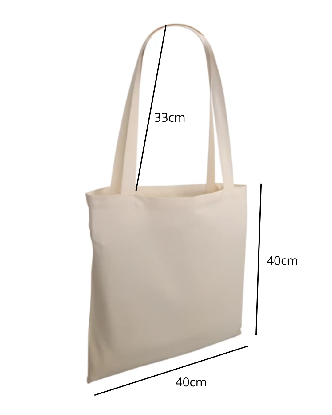 Klasická bavlněná taška s dlouhým uchem, odtrhávací etiketa, kvalitní šití, vhodná pro aplikaci a reklamní účely možné prát 30°C